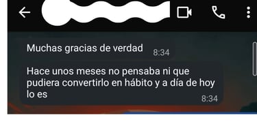 ”Muchas gracias de verdad Hace unos meses no pensaba ni que pudiera convertirlo en hábito y a día de hoy lo es.”