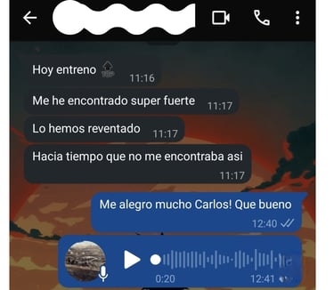 Recibes un plan personalizado con seguimiento y ajustes semanales siempre que sea necesario. Se explica mediante un video todos los cambios realizas y como vamos.
